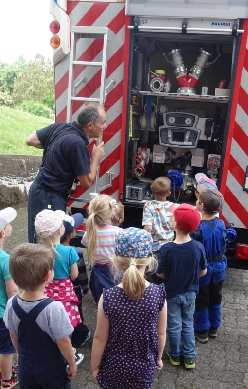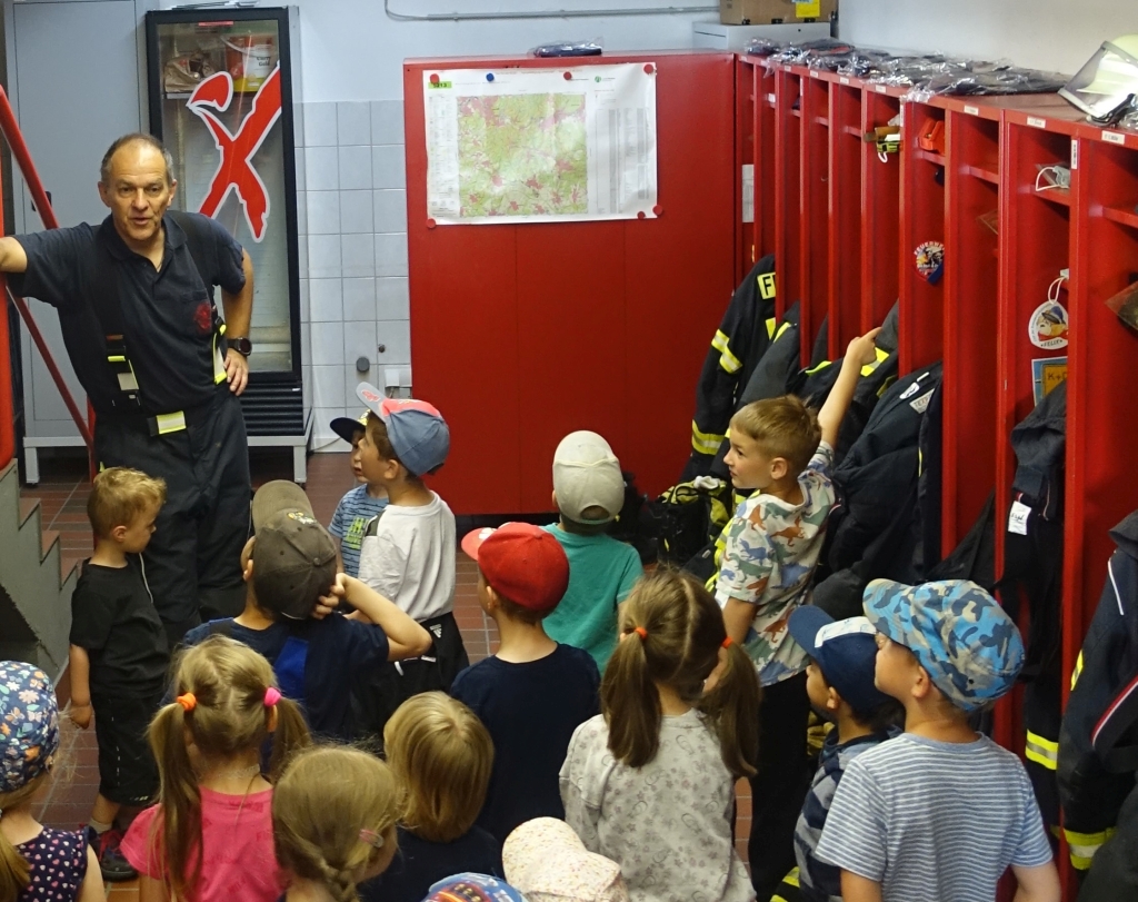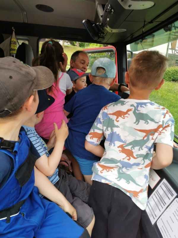 Neben ausgiebigem Erkunden der Fahrzeuge, innen wie auch außen, wurde das Feuerwehrhaus samt Spindraum erkundet.